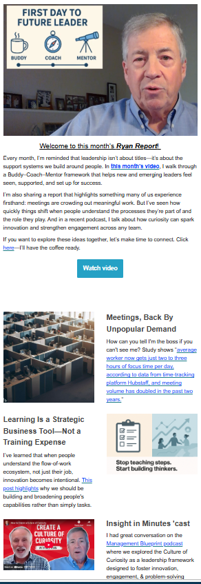 I’m also highlighting a new report that confirms what many of us experience firsthand: meetings are taking more and more time away from meaningful work. Yet I’ve seen how quickly things improve when people understand the processes they’re part of and the role they play within them. And in a recent podcast conversation, I dig into how curiosity can spark innovation, strengthen engagement, and help teams solve problems together.