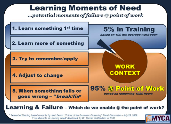 For those interested in hearing more about the 5 moments of learning need surf over and listen to a Podcast of Dr. Conrad Gottfredson at http://www.xyleme.com/podcasts/archives/7