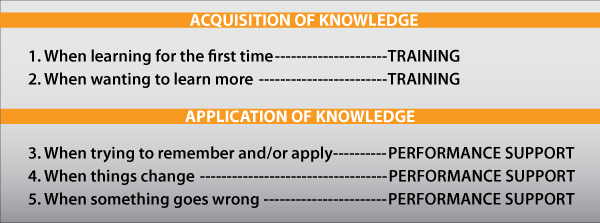 While mobile can be most effective in performance support it is appropriate for all 5 moments, if the design model includes reusable objects you can re-purpose, re-use, review and renew your learners. The primary objective is to be effective while being efficient, whether content being acquired is self-directed or business enforced learners want to get to the “how do I…” (aka WIIFM) as fast as possible. We know good design focuses on meeting the moment of need so let’s not add in too much, the rest is commentary and can be placed for additional searching when, and if, needed on a web site.