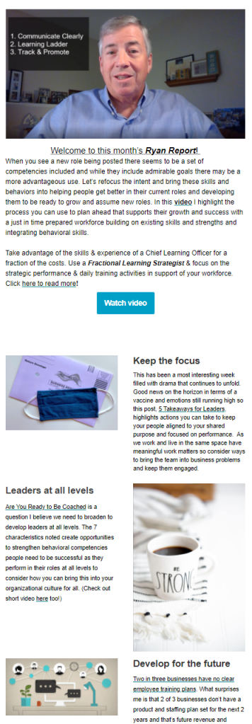 News to use, ideas to share in this month’s Ryan Report.  Love to hear your feedback and new topics you want to learn and grow with!  Always open to Zooming with you, together we are stronger so don’t let being remote or at a distance keep us from connecting and engaging – let’s learn together!  I’ll bring coffee….