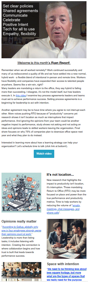 Many leaders are mandating a return to the office, they say hybrid is failing more than succeeding. I disagree, it’s not the model itself, but how leaders execute it. In this video I examine key process agreements leaders and teams must set to achieve performance success. Setting process agreements is a beginning for leadership to act with intention.