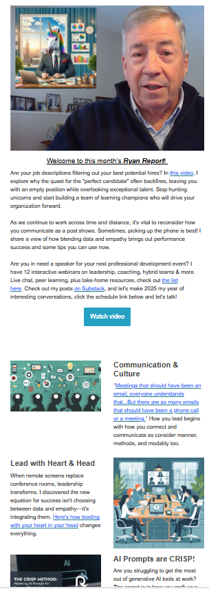Are you in need a speaker for your next professional development event? I have 12 interactive webinars on leadership, coaching, hybrid teams & more. Live chat, peer learning, plus take-home resources, check out the list here. Check out my posts on Substack, and let’s make 2025 my year of interesting conversations, click the schedule link and let’s talk!